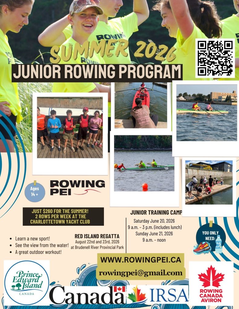 Do you have a teen 14+ who is interested in rowing this summer? Click here to find out more about our Crew 26 summer rowing program. Or send us an email: rowingpei@gmail.com